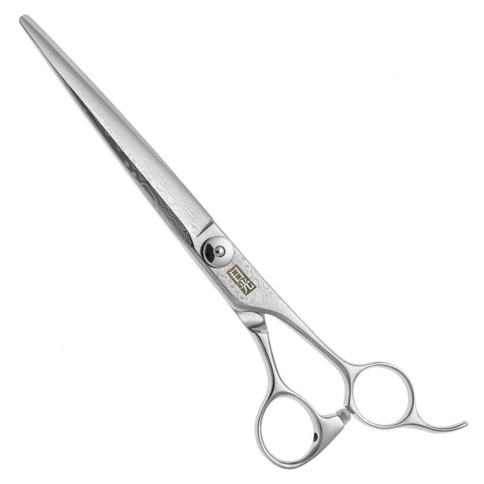 Nikko Damascus Barber Scissors represent the pinnacle of premium barbering tools. Made from exotic Damascus steel and featuring an ATS314 cobalt cutting core, the Nikko Damascus Barber Scissors offer razor-sharp precision cutting. The design honors traditional barbering heritage, showcasing a classic offset handle and a straightforward, straight blade edge. Surprisingly lightweight for a 7.0-inch scissor, the combination of cobalt and Damascus steel enhances its usability. This is truly a distinctive and modern reinvention of a classic scissor shape